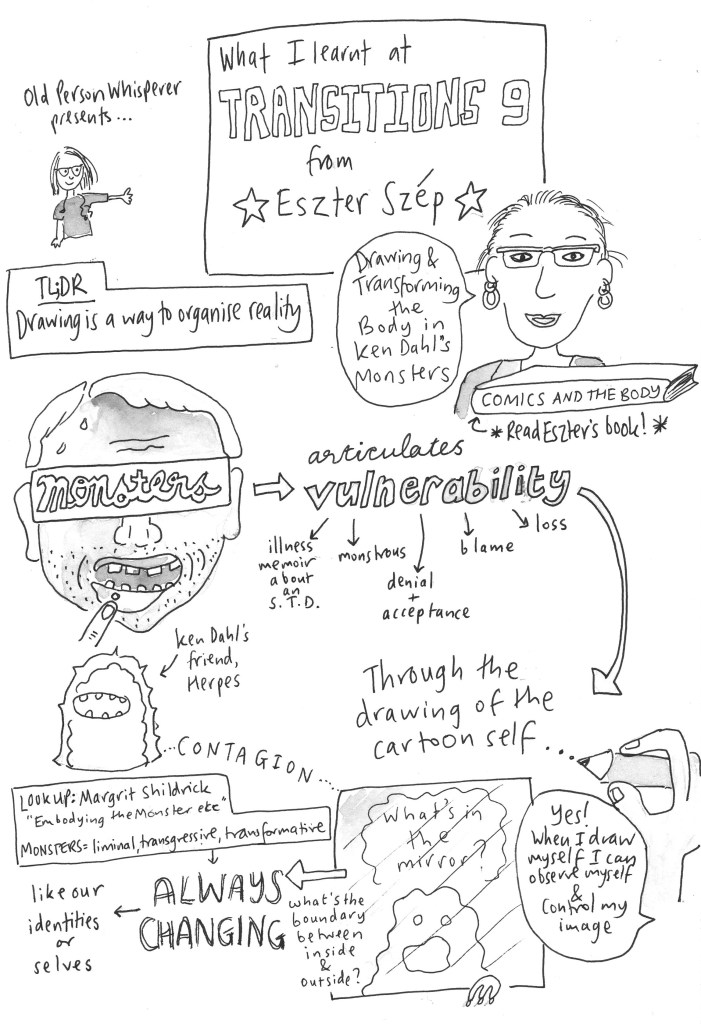You can watch the 20-minute presentation on Monsters, a very creative and playful comic on STDs by Ken Dahl (penname for Gabby Schulz) on YouTube. This video was made for the Transitions 9: New Directions in Comics Studies conference in 2021.