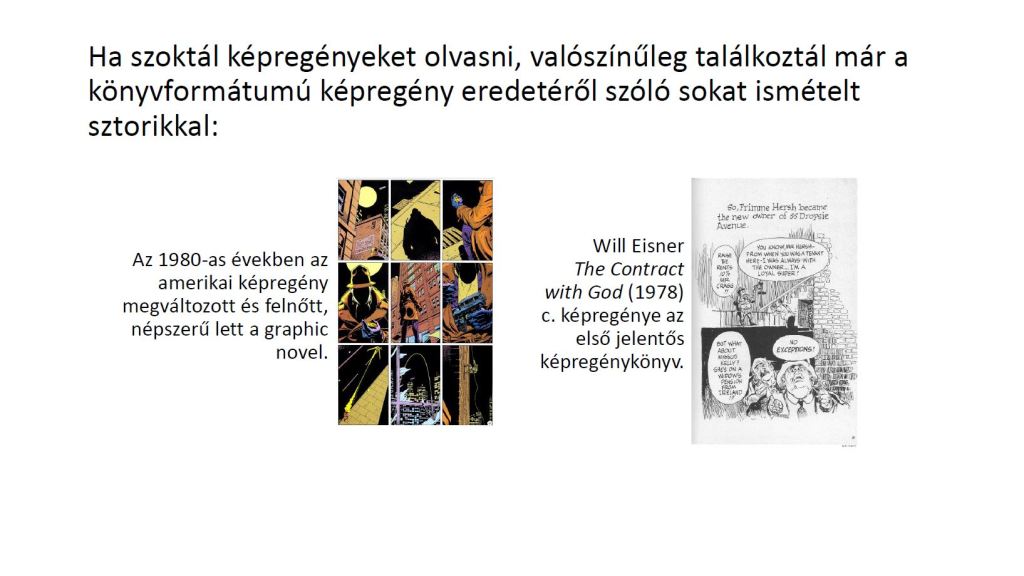A projectemben ezzel az anyagi és morális válsággal is foglalkozom kicsit, de leginkább azt mutatom be, hogy mennyire sokféle ellentmondó dolgot gondoltak és csináltak a képregényesek EGYSZERRE. Egy dinamikus, izgi, változó korszak ez: senki sem tudta, hogy a képregénykönyv sikeres lesz, és azt sem, hogy a neve végül az lesz, hogy graphic novel.