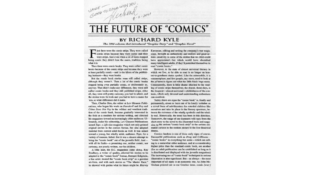 Ellentétben a 80-as években (és utána) népszerűvé vált mítoszokkal, a graphic novelt nem Will Eisner vagy a managere találta ki vagy kezdte el népszerűsíteni. A graphic novel szót 1964-ben alkotta meg egy egészen konkrét ember egy egészen konkrét szándékkal – és a hetvenes évek folyamán igen sokan használták.