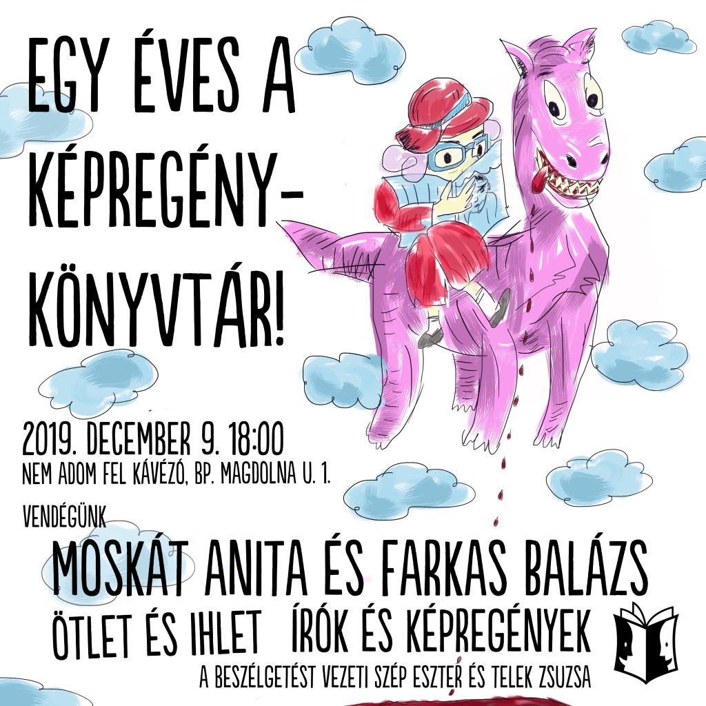 Celebrating the Frist Birthday of the Comics Library – with our guests Anita Moskát, writer of fantasy novels, and Balázs Farkas, writer of horror/weird prose – on 9 December 2019.