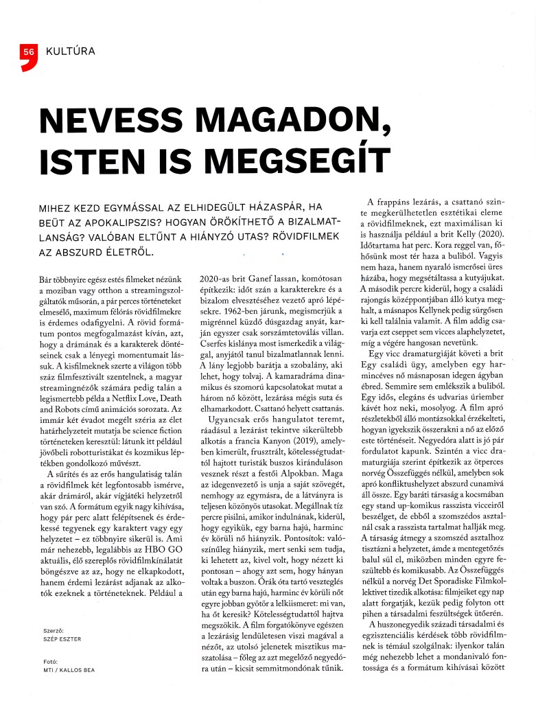 “Nevess magadon, Isten is megsegít” [HBO GO-n elérhető rövidfilmekről] 168 óra, 2021/46, 56-57.
