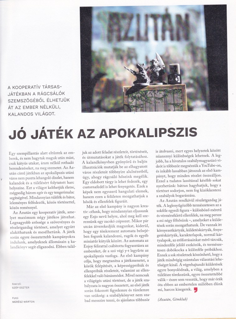 “Jó játék az apokalipszis” [Az Azután című társasjátékról]